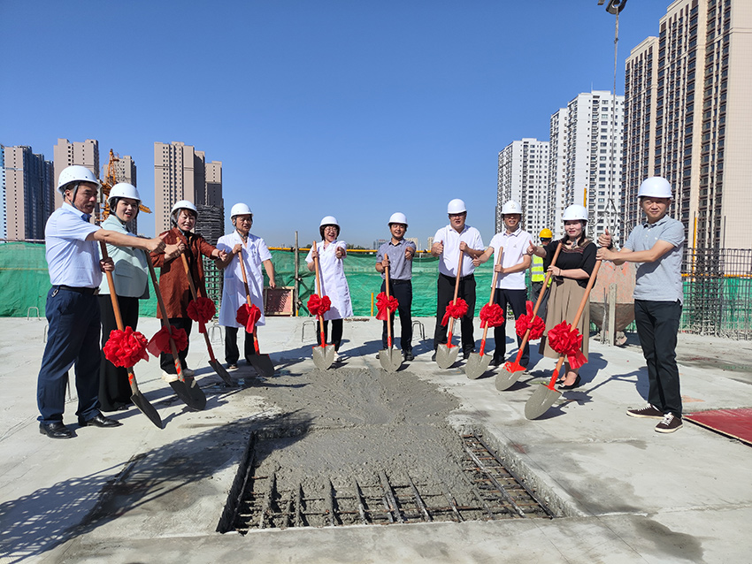 9月3日上午,金天川醫(yī)院隆重舉行喜封金頂儀式。今天的儀式發(fā)展重要的全體醫(yī)護(hù)人員,施工單位,設(shè)計(jì)單位,監(jiān)理單位代表參加了今天的封頂儀式。集團(tuán)公司副總經(jīng)理、金天川醫(yī)院總經(jīng)理劉昆女士發(fā)表了熱情洋溢的講話,劉昆副總強(qiáng)調(diào)今天是醫(yī)院發(fā)展史上的一個(gè)里程碑,金天川醫(yī)院即將翻開嶄新的一頁。施工單位新疆七星科技股份有限公司代表現(xiàn)場(chǎng)進(jìn)行了表態(tài)發(fā)言,表示將保證醫(yī)院大樓能夠保質(zhì)保量如期交付使用。隨著封頂禮炮燃起,最后一罐混凝土完成澆筑,標(biāo)志著醫(yī)院正式封頂!