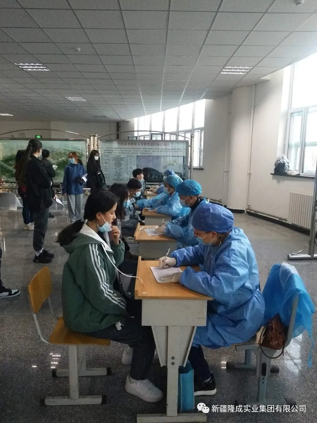此次大學(xué)生體檢正值烏魯木齊疫情防控的特殊時(shí)期,體檢學(xué)生人數(shù)多、疫情防控要求嚴(yán)、現(xiàn)場(chǎng)組織難度大。體檢過程中,全體醫(yī)護(hù)人員嚴(yán)格落實(shí)疫情防控相關(guān)規(guī)定,嚴(yán)格執(zhí)行登記、測(cè)溫、消毒、戴口罩、1米間距、通風(fēng)等防范措施,現(xiàn)場(chǎng)配備急救車、急救藥品,現(xiàn)場(chǎng)指揮人員及時(shí)疏導(dǎo)體檢大學(xué)生,提醒有關(guān)防疫注意事項(xiàng)和要求,確保了體檢任務(wù)圓滿完成、疫情防控萬無一失。擔(dān)負(fù)此次體檢任務(wù)的金天川醫(yī)院、金橋社區(qū)衛(wèi)生服務(wù)中心的內(nèi)科、外科、B超、心電圖、檢驗(yàn)科、口腔科、眼科等43名醫(yī)務(wù)人員。